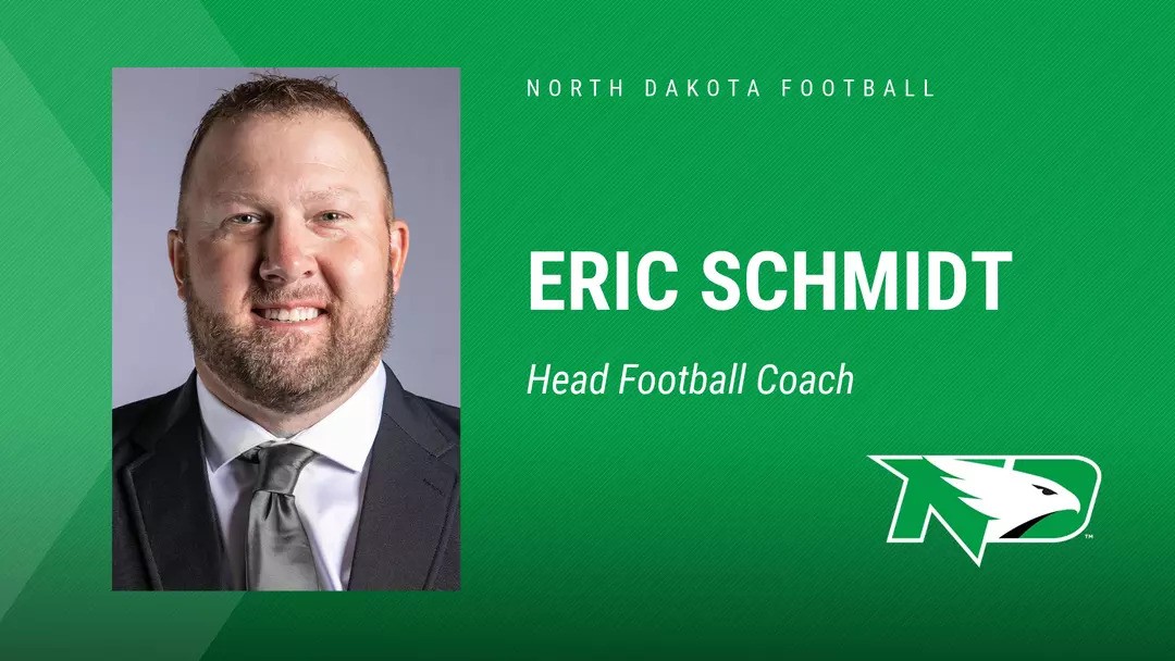 University of North Dakota Director of Athletics Bill Chaves announced on Sunday evening that Eric Schmidt has been named the 28th head coach of the North Dakota football program, pending a background check.
