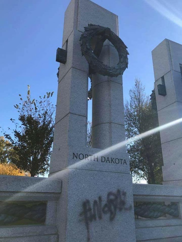 Dakota Access Pipeline Project protestors vandalize National World War II Memorial.