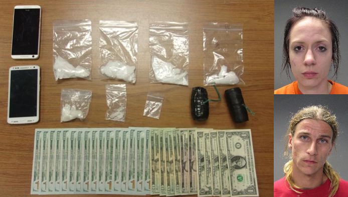Two people were arrested for having drugs after being stopped for a burned out headlight on I-94 in Moorhead.