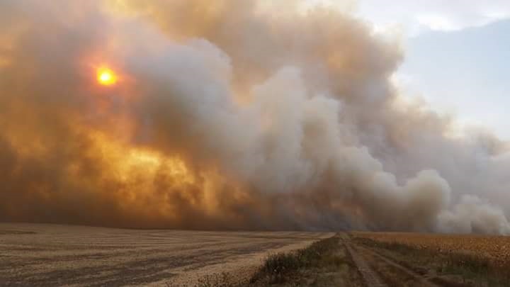 A section of I-29 is shut down for about an hour due to a wind fueled fire in Richland County.